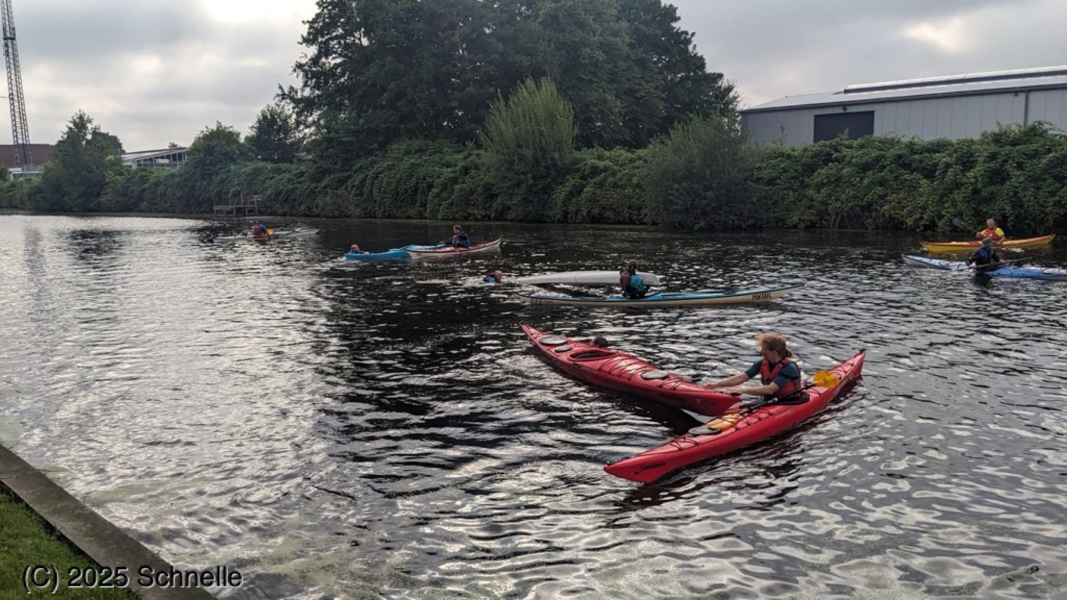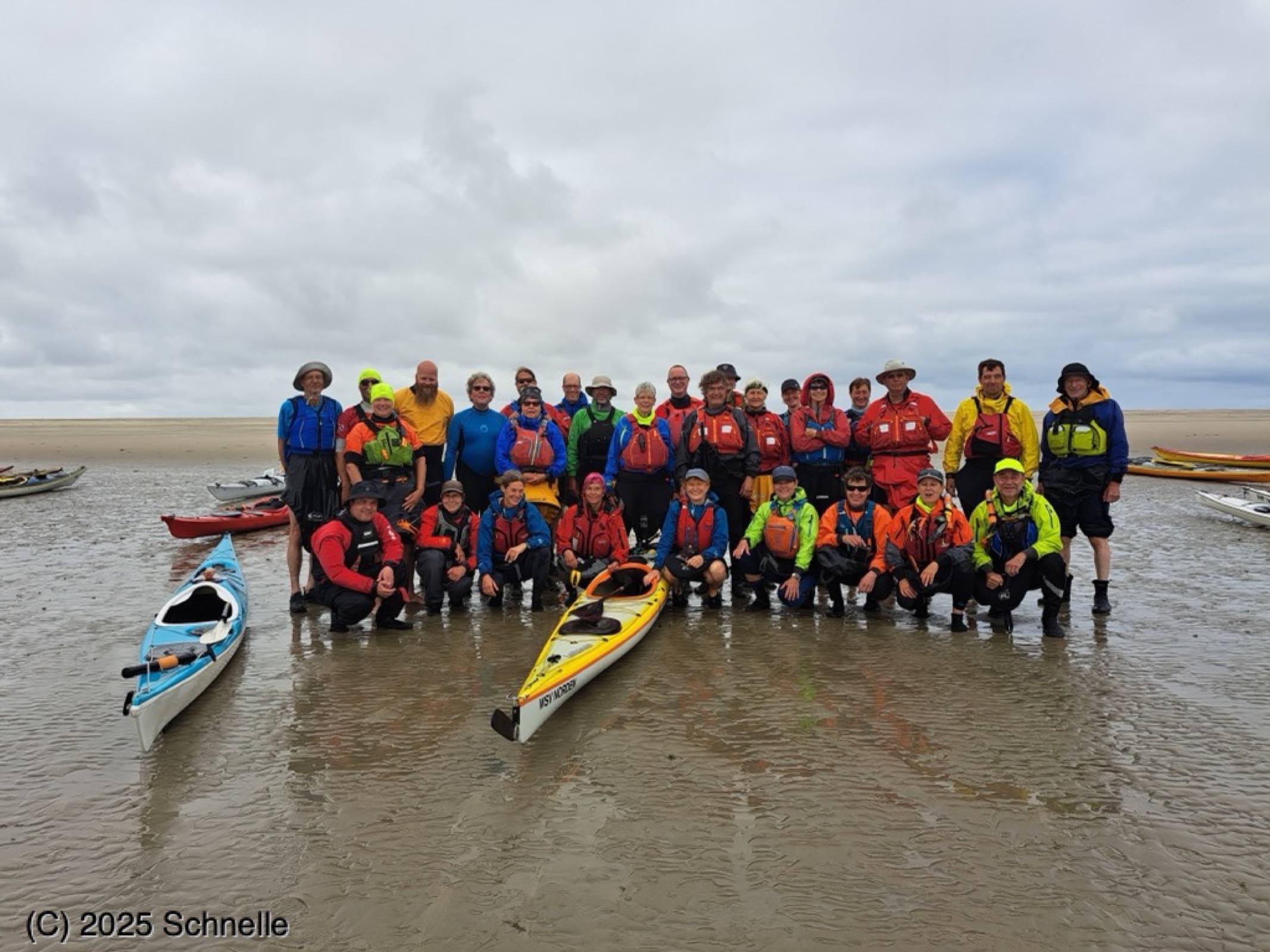 Mitte August 2025 hat der WSV Norden zu den Wattenmeerkajaktagen nach Norden eingeladen. Von Greifswald an der Ostsee, Hamburg im Norden über Nordrhein-Westfalen im Westen bis Karlsruhe im Süden reisten insgesamt 24 Kanuten zur Kanustation in Norden. Am Freitag gab es eine Sicherheitsübung auf dem Norder Tief direkt vor dem Bootshaus, wobei die Teilnehmer den sicheren Wiedereinstieg üben konnten. Dieser ist Pflicht um an den Nordseefahrten teilzunehmen. Beim gemeinsamen Abendessen vom zusammengestellten Buffet wurden letzte Einzelheiten zur Tour nach Spiekeroog am nächsten Morgen besprochen.