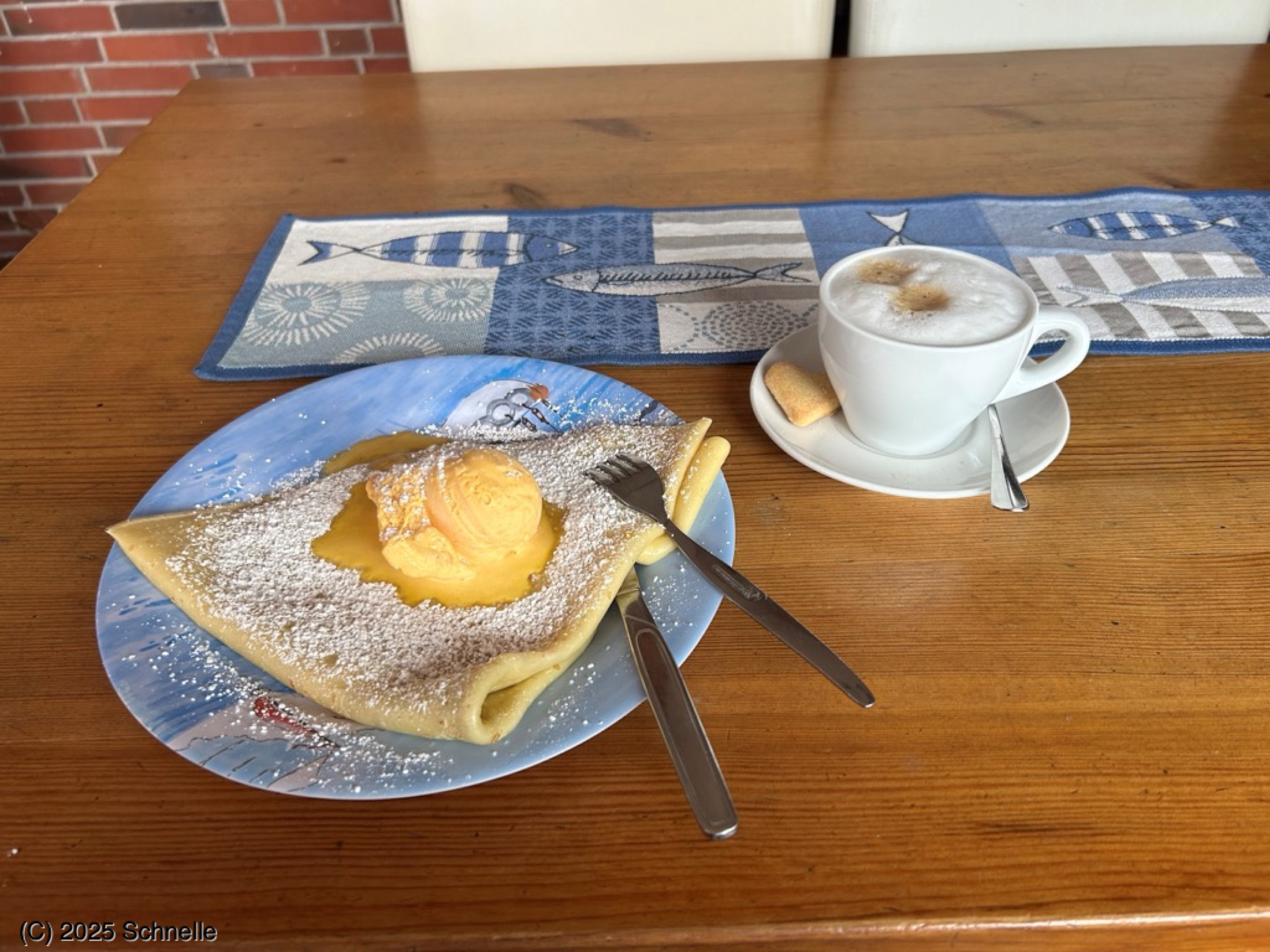 Mittlerweile hat der Regen aufgehört und es zeigte sich sogar ab und an die Sonne, sodass alle den Aufenthalt im Örtchen von Baltrum zum Beispiel bei, Kaffee und Crêpes mit hausgemachtem Sanddorneis genießen konnten.