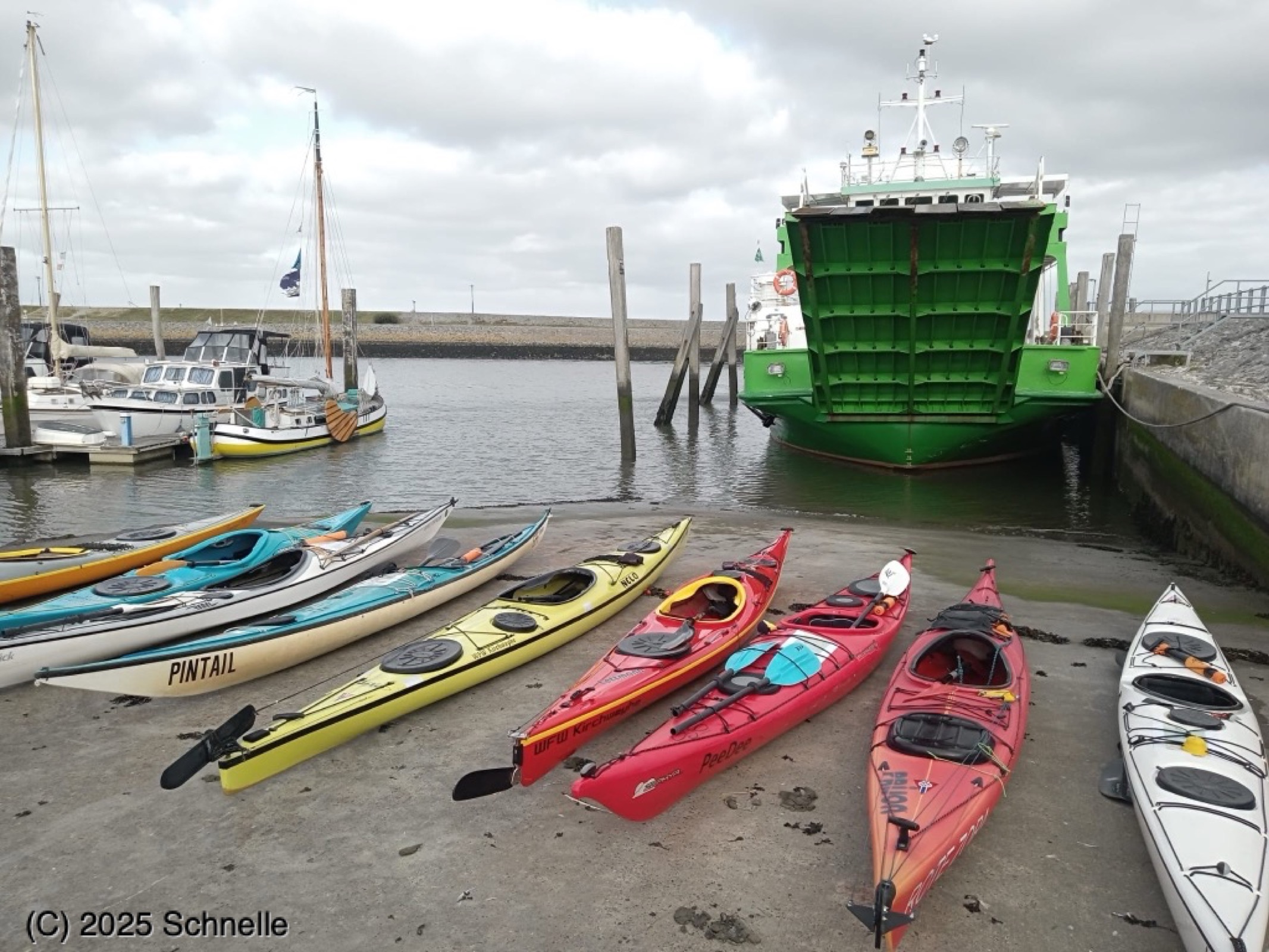 Pünktlich um 7 Uhr ging es los nach Neuharlingersiel um mit ablaufendem Wasser und somit der Strömung im Rücken zu paddeln. Mit den Mitgliedern des WSV Norden, die die Gruppe sicher navigiert und zusammengehalten haben, mussten nun mehr als 30 Boote über die rutschige Rampe im Hafen zu Wasser gelassen werden.